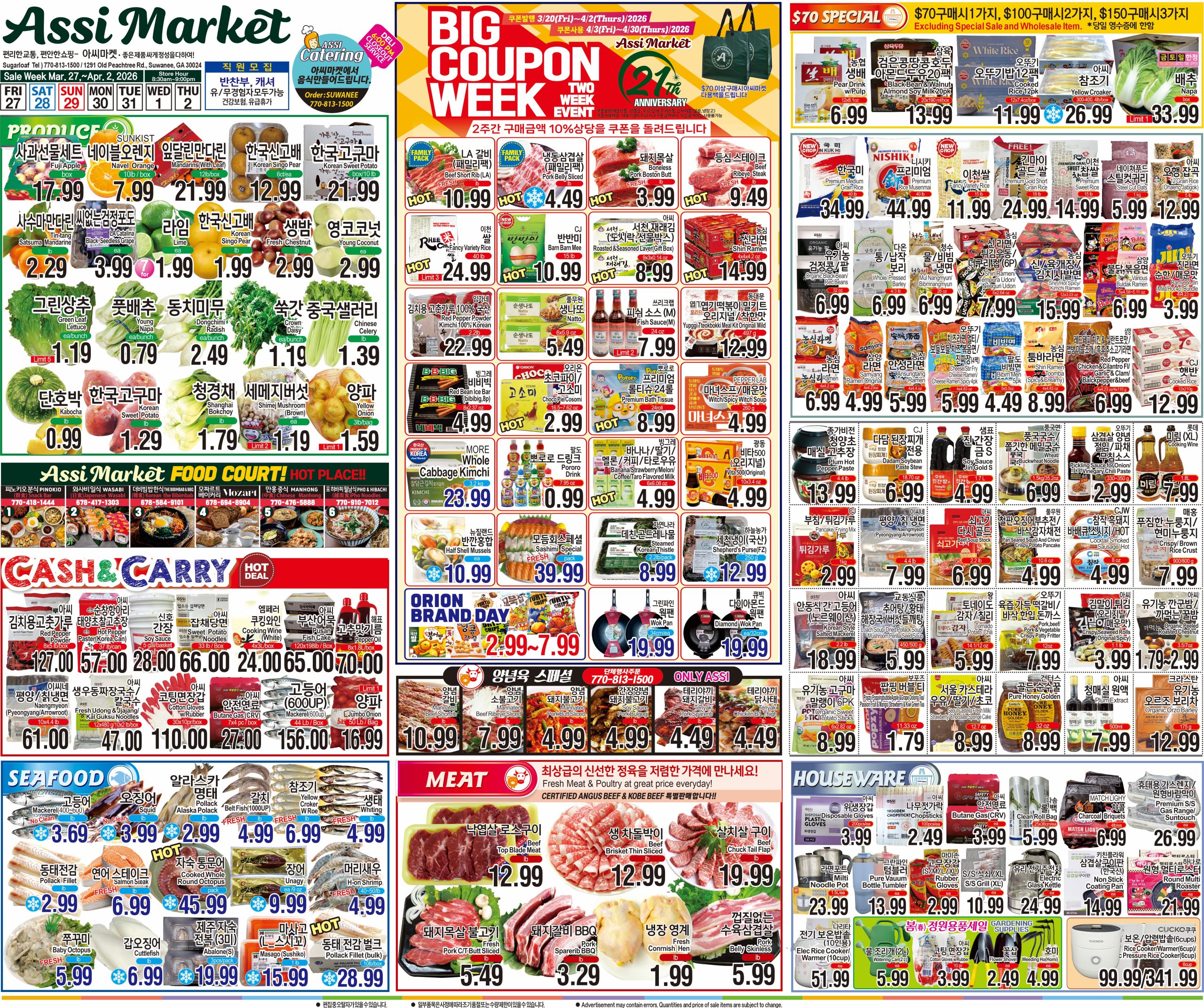 애틀랜타 주요 한인마켓의 세일 정보를 소개하는 금주의 마켓세일은 매주 목요일에 업데이트 됩니다. 세일 날짜를 먼저 확인해주세요.