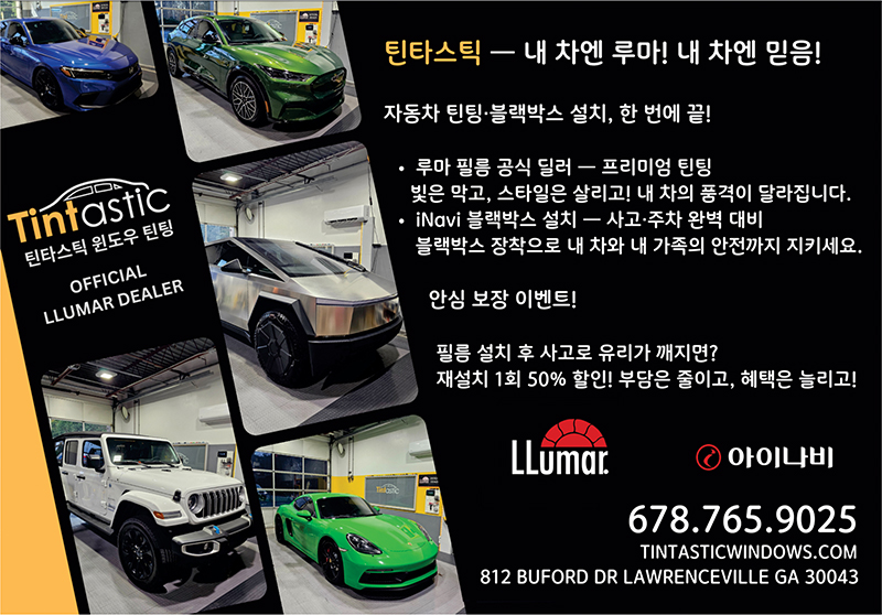 ◆로렌스빌 ‘틴타스틱’ 자동차 틴팅·카메라 10~15% 할인