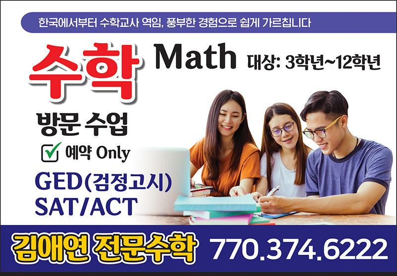 <div class="scroller01" data-direction="up"><article class="story-news article"> <h3 class="story-news article"><strong>비즈니스 정보</strong></h3> 업체명 : 김애연 전문수학 전화 : 770-374-6222 <img class="size-full wp-image-104424 aligncenter" src="https://www.atlantajoongang.com/wp-content/uploads/2025/03/업소록배너_최종.jpg" alt="" width="797" height="247" /> </article></div>
