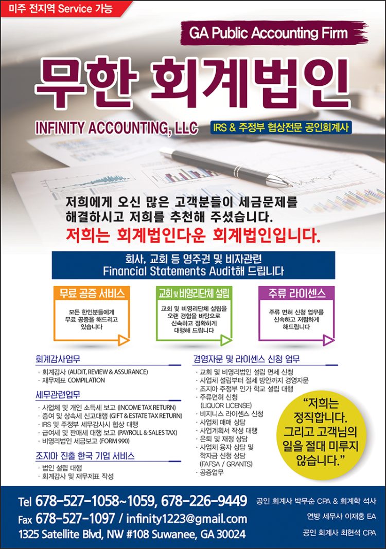 [조지아·동남부 추천 한인업체] 무한 회계법인 INFINITY ACCOUNTING, LLC