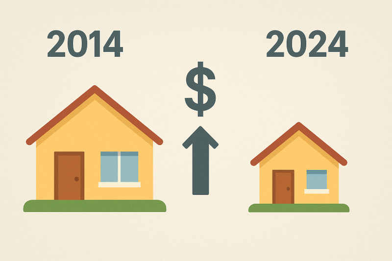 10년 동안 집 크기는 줄었지만 스퀘어피트당 가격은 급등했다. 2014년 미국의 신축 단독주택 스퀘어피트당 평균 가격은 97.25달러에서 2024년 168.86달러로 73.6% 올랐다. 서부 지역이 104.5%로 전국에서 가장 많이 상승했으며, 남부(72.8%), 동북부(67%), 중서부(62.7%)가 뒤를 이었다.