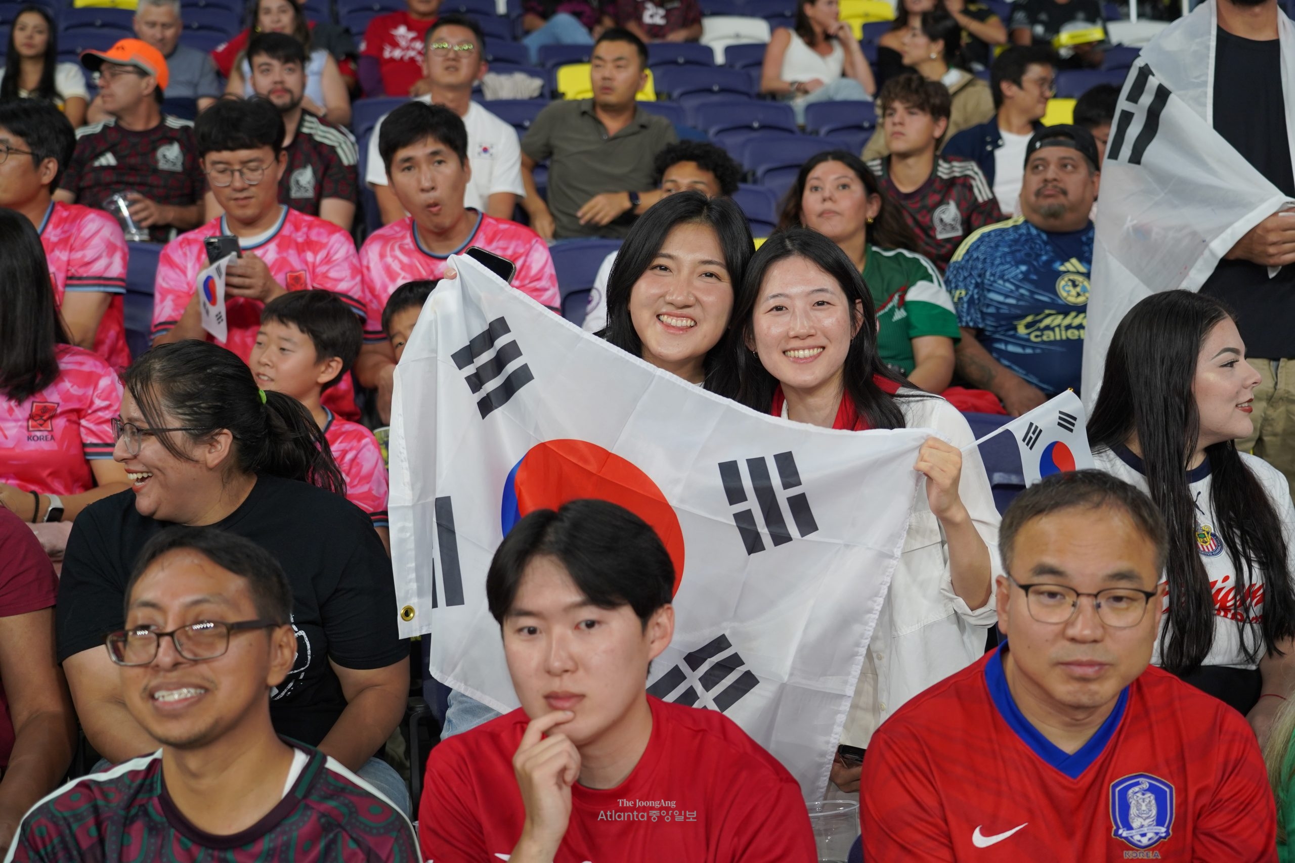 당초 500여명이 운집할 것이라는 예상과 달리 경기장에는 1500여명의 한인이 자리를 채웠다. 애틀랜타·내슈빌·테네시 한인회 등 동남부 한인단체가 판매한 단체 응원 입장권만 경기장 4개 섹션 내 1078석이다. 이날 전체 관중수가 2만7604명이었음을 고려하면 멕시코와 한국이 17대 1에 이르는 수적 열세였지만 실제 관중석 분위기는 달랐다. 한인회가 원정 응원단의 이동을 돕기 위해 조지아주 둘루스에서 50인승 단체버스 두 대를 운행해 팬들을 실어나르고, 단체 제작한 응원복을 손태극기와 함께 배포하는 등 조직적인 응원을 보여줬다.
