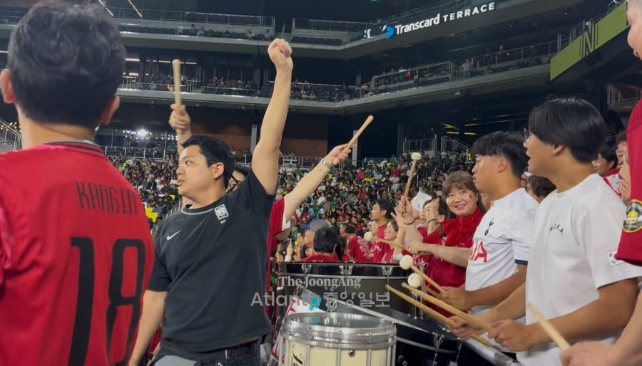 응원단장을 맡은 내슈빌의 류승한(38)씨는 “애틀랜타 뿐만 아니라 앨라배마주, 인디애나주 등 전국 각지에서 팬들이 모였다”며 “10년째 미국에서 살면서 목놓아 대한민국을 외칠 기회가 없었는데 오늘 선수들이 열심히 뛰어준 덕에 신명나게 노래를 불렀다”고 했다. 한국 축구대표팀 공식 응원단 ‘붉은악마’로 활동한 전력이 있는 한인 다섯명이 북과 징을 치며 ‘아리랑’, ‘오 필승 코리아’를 선창했다. 이들은 경기를 앞두고 3번의 연습을 거쳐 합을 맞췄다. 밤 10시쯤 경기가 끝나고도 팬들은 퇴근하는 선수들의 버스를 자정까지 기다려 배웅했다.
