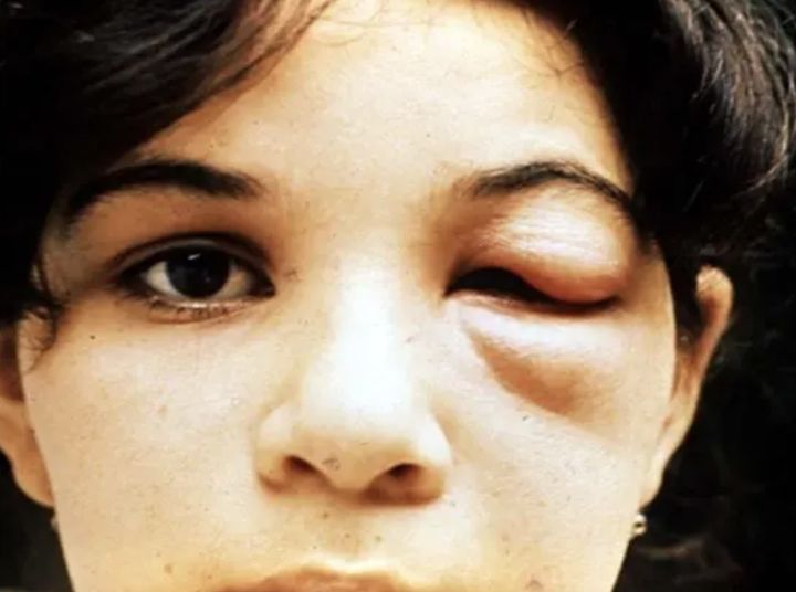 미국 특히 남부지역에서  ‘키싱 버그’를 매개로 한 샤가스병이 확산하고 있다. 증상 중 하나인 눈꺼풀 부종이 일어난 모습.  [WHO 제공]