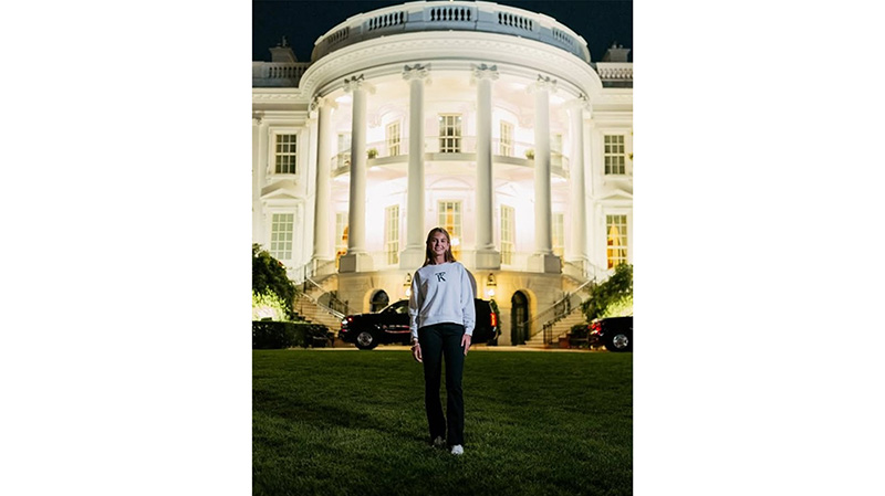 트럼프 대통령의 장남 도널드 트럼프 주니어의 딸 카이 트럼프(Kai Trump·18)는 최근 자신의 이니셜 ‘KT’가 새겨진 스웨트셔츠를 출시했다. 그녀는 지난 26일 백악관 사우스론에서 트럼프 대통령과 함께 언론에 모습을 드러내며 이 옷을 직접 입고 홍보에 나섰다.