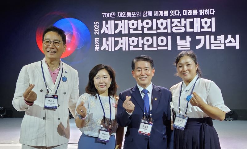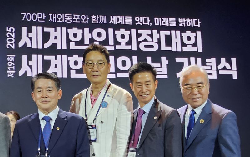 9월 28일부터 10월 2일까지 서울 그랜드워커힐호텔에서 열린 2025 세계한인회장대회에 박은석(맨 왼쪽) 한인회장이 애틀랜타를 대표해 참석했다. 올해 대회에 전 세계 67개국 한인회장, 대륙별 한인회총연합회 임원 등 370여명이 참석했으며, 이 가운데 미주 한인회장은 108명이었다. 애틀랜타 한인회는 “박 회장은 대회에서 전라도지사와 MOU(업무협약)를 추진하는 등 한국과 미주 여러 지역과 교류하고 차세대 동포 정체성 함양 문제, 재외선거 제도 개선 등에 대해 논의했다”고 밝혔다.