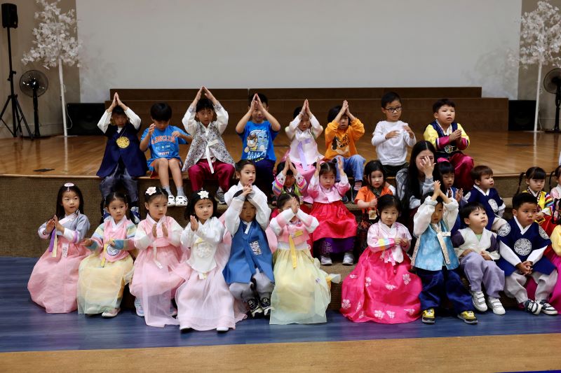 냇가에 심은 나무 한국학교 진달래반 학생들이 한복을 차려입고 등교했다.