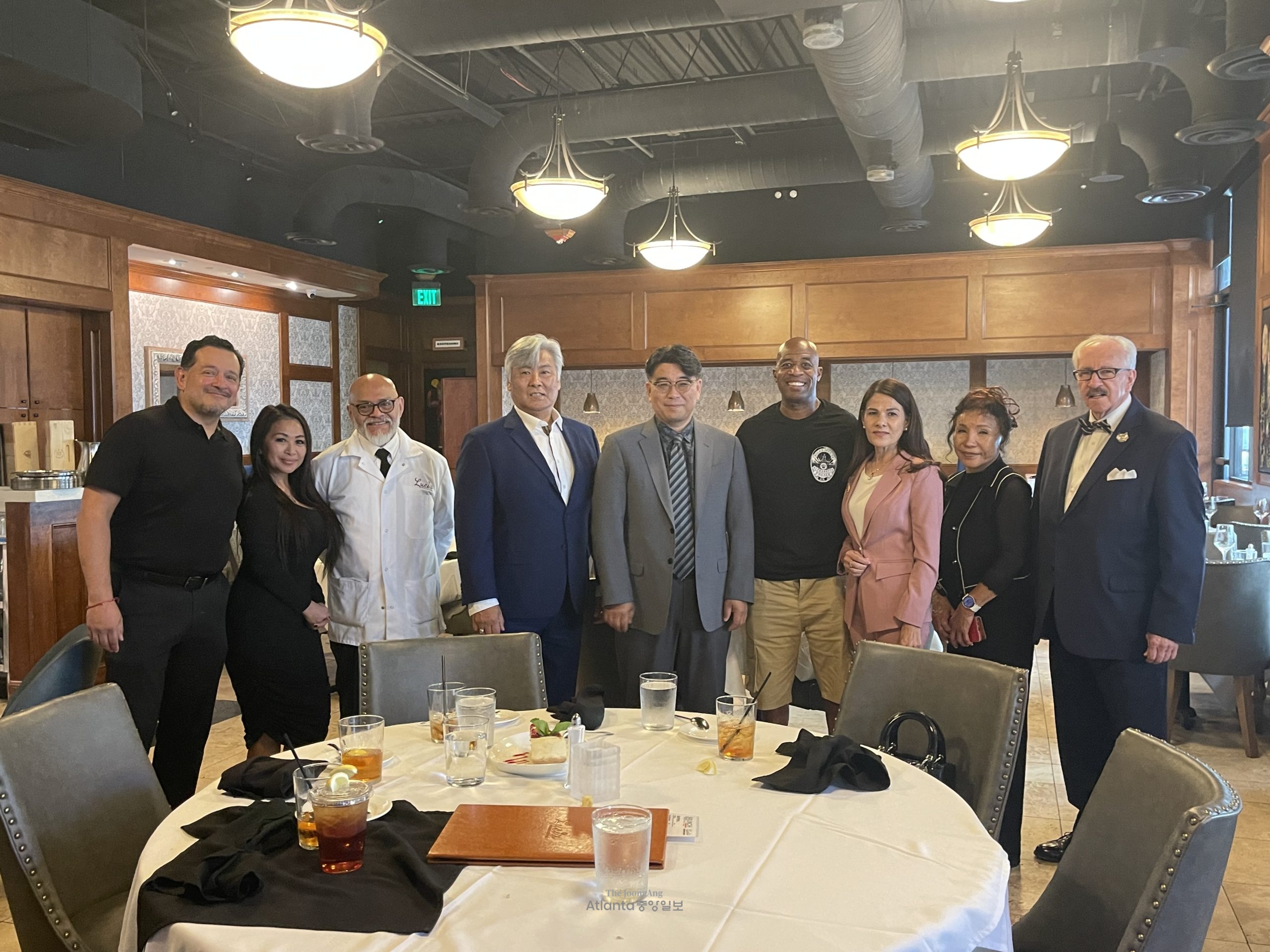 클레이튼 이 조지아범죄예방위원회 회장(왼쪽 네번째)과 저스틴 김 루치스 대표(왼쪽 다섯번째)가 오찬 참석자들과 기념사진을 찍었다.