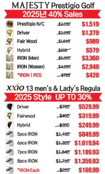 36년 전통 한인 골프 전문딜러 노스크레스트 골프(3545 Northcrest Rd, Atlanta)는 2025년형 고급 마제스티 골프채를 최대 40% 할인한다. 또 젝시오는 최대 30% 할인한다. 이곳은 실외 연습장과 스크린골프 시설도 갖추고 있으며, 유명한 프로들에게 레슨도 받을 수 있다. 타주 배송도 가능하다. 문의=770-723-0002