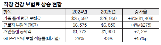 특히 의약품 가격 상승이 최근 몇 년간 보험료 인상의 핵심 요인으로 지목됐다. 200명 이상 직원을 둔 기업 중 3분의 1 이상이 처방약 가격이 보험료 상승에 크게 영향을 줬다고 답했으며, 그중에서도 ‘GLP-1’ 계열 체중감량 약(위고비, 젭바운드 등)이 대표적인 비용 상승 요인으로 꼽혔다.