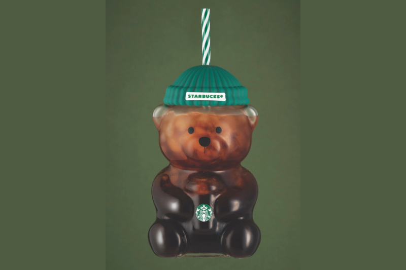 지난 6일 할러데이 음료와 함께 판매를 시작한 이 제품은 곰 모양의 유리컵 위에 녹색 실리콘 비니를 씌운 독특한 디자인으로 가격은 30달러다.