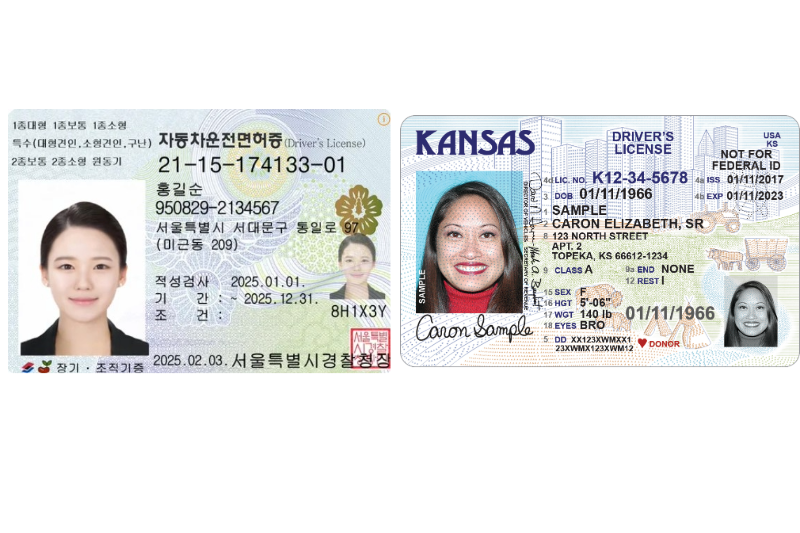 한국 운전면허증(제1종 대형·특수·보통면허, 제2종 보통면허) 소지자가 캔자스주 면허증(Class C standard·제2종 보통면허와 유사)을 취득하는 방식이다.