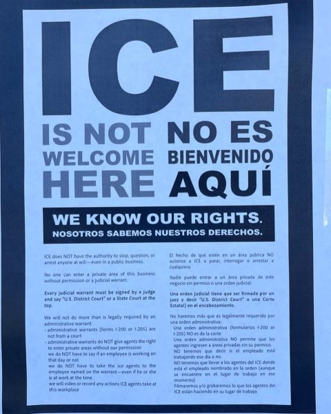 슈퍼G마트 파인빌 지점 입구에 붙은 ICE 이민단속 비협조 방침 안내문.