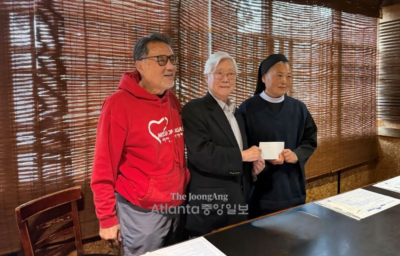 조중식(91) 호프웰 인터내셔널 회장은 20일 한인 봉사단체 미션아가페(회장 제임스 송)에 후원금 1만 달러를 전달했다. 미션아가페는 후원금 중 일부를 조지아 꽃동네(원장 김영희 마지오 수녀)와 나눌 예정이다.
