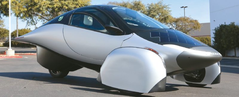 남가주 칼스배드에 본사를 둔 압테라 모터스(Aptera Motors)는 차량 표면에 부착 가능한 태양광 시스템을 만들었다.
