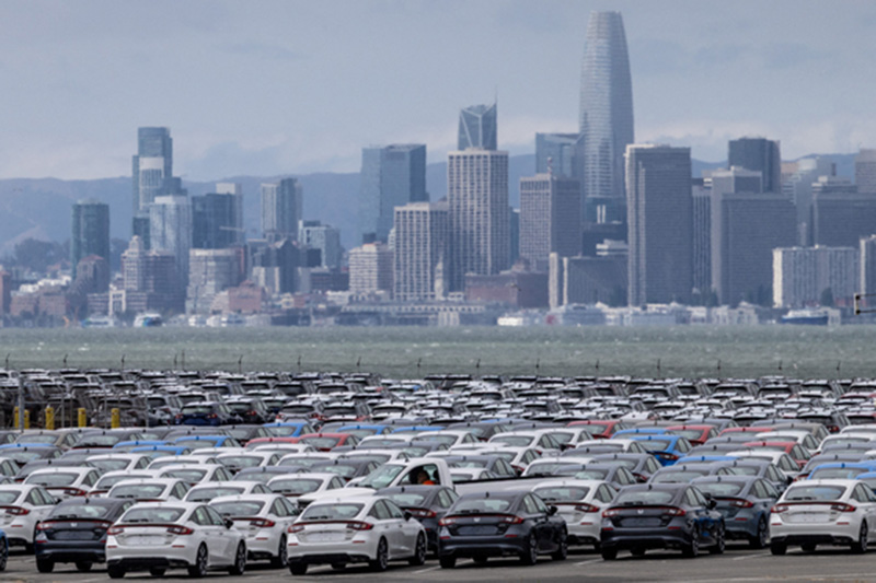 지난 7월 7일 미국 캘리포니아주 샌프란시스코 만의 리치먼드 항구에 일본 자동차 제조사 스바루와 혼다의 신차들이 주차돼 있다. [로이터]