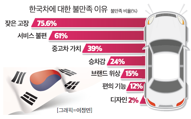 잦은 고장·AS 이용 불편 1·2위…중고차 가지도 취약