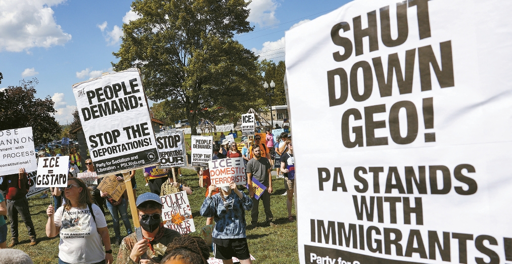 ![지난 8월 펜실베이니아주 필립스버그에 위치한 ‘모샤논 밸리 프로세싱 센터’(ICE 이민자 구금시설·GEO그룹 운영) 인근에서 시위 참가자들이 이민자 구금 중단을 요구하며 시위를 벌이고 있다. [로이터]](https://www.atlantajoongang.com/wp-content/uploads/2025/12/2025-12-22-18-00-37-750x386.jpg)