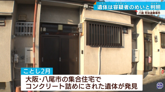 레이나의 시신이 18년만에 발견된 오사카부 야오시의 공동주택. 사진 테레비오사카 캡쳐