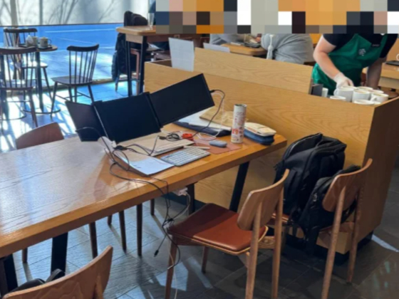 사진을 본 네티즌들은 “사무실 차린 것 같다”, “이럴 거면 카페가 아니라 공유 오피스로 가라”며 남성을 비난했다.