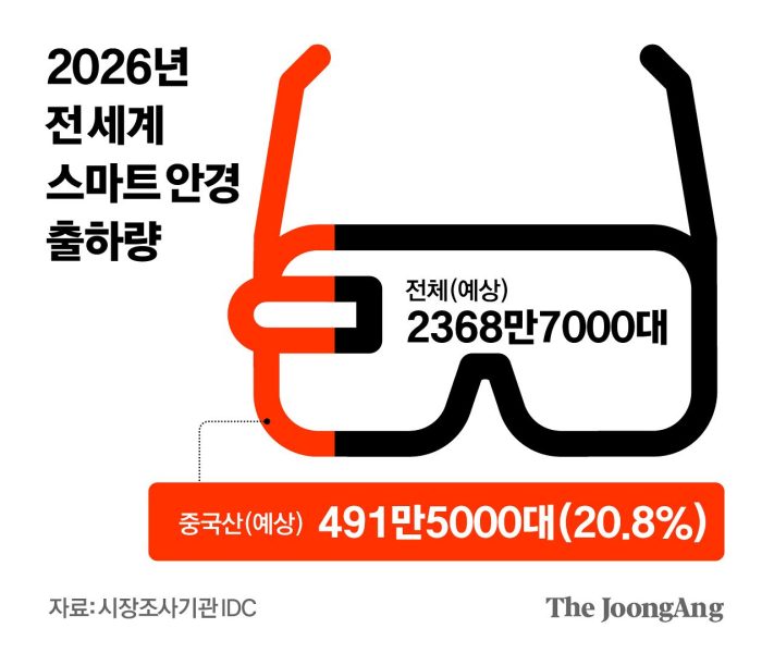 성장 속도도 가파르다. 시장조사기관 IDC는 2026년 세계 스마트안경 출하량이 2368만7000대를 넘어설 것으로 예상했다. 이 증 중국 시장이 491만5000대(약 21%)를 차지할 것으로 내다봤다. 중국의 성장세는 수치로도 확인된다. 지난해 3분기 중국 스마트안경 출하량은 62만3000대로 전년 동기대비 62.3% 급증했다. 중국 정부는 소비 진작의 일환으로 2026년까지 6000위안(약 125만원) 미만 스마트안경 가격의 15%를 지원하는 보조금 제도를 도입했다. SCMP는 “중국 업체들이 탄탄한 공급망을 바탕으로 복잡한 부품을 소형 안경에 구현하는 등 기술 격차를 빠르게 좁히고 있다”고 평가했다.