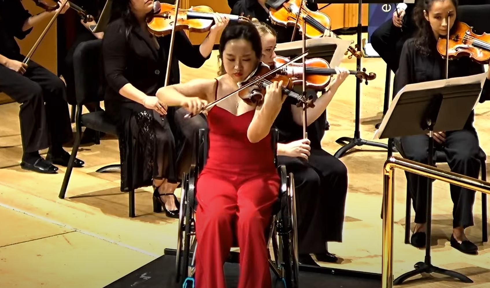 지난 18일 플로리다주 보카러턴에서 열린 ‘2026 엘마 올리베이라 국제 바이올린 콩쿠르'(EOIVC)에서 바이올리니스트 임현재(28)씨가 우승했다. 그는 휠체어에 앉은 채로 보카러턴의 린대학 필하모니아와 시벨리우스 바이올린 협주곡을 연주했다.