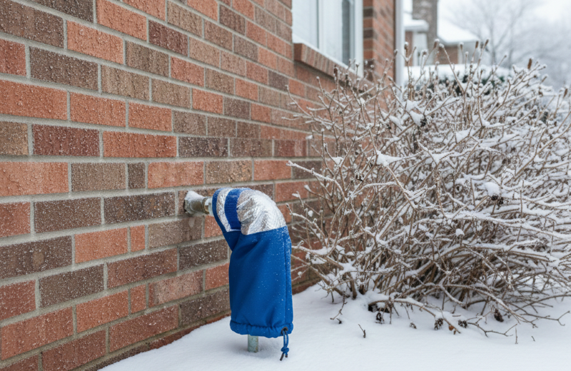 배관 동파를 막기 위해 옥외 수도꼭지에 덮개를 씌우는 것이 좋다. [AI 생성 이미지]