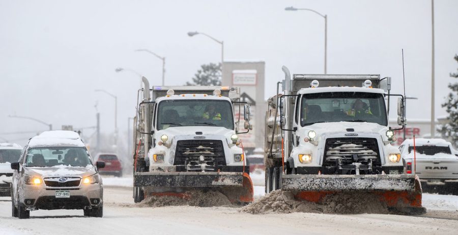 미국 콜로라도주 콜로라도스프링스에서 시 제설차가 노스 아카데미 대로 남쪽 방향 차로에 쌓인 눈을 치우고 있다. [로이터]