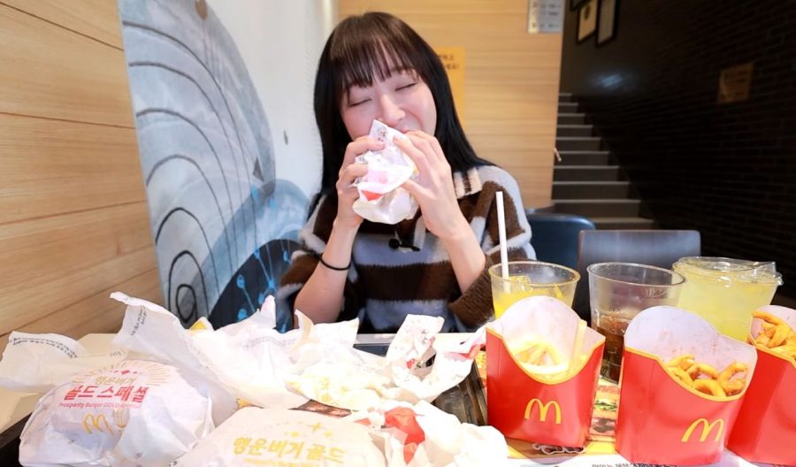 유튜버 쯔양이 행운버거 먹방을 진행하는 모습. 사진 유튜브 캡처
