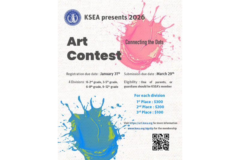 올해 주제는 ‘Connecting the Dots’로 온라인을 통해 먼저 참가 신청을 한 후 작품을 사진으로 찍어서 이미지 파일을 업로드하면 된다. 미국에 거주하는 K~12학년 학생 중 부모 또는 가디언이 KSEA 회원이면 대회에 참가할 수 있다. 회원이 아니라면 온라인에서(ksea.org/signUp) 연회비 35달러를 내고 회원가입을 하면 된다.
