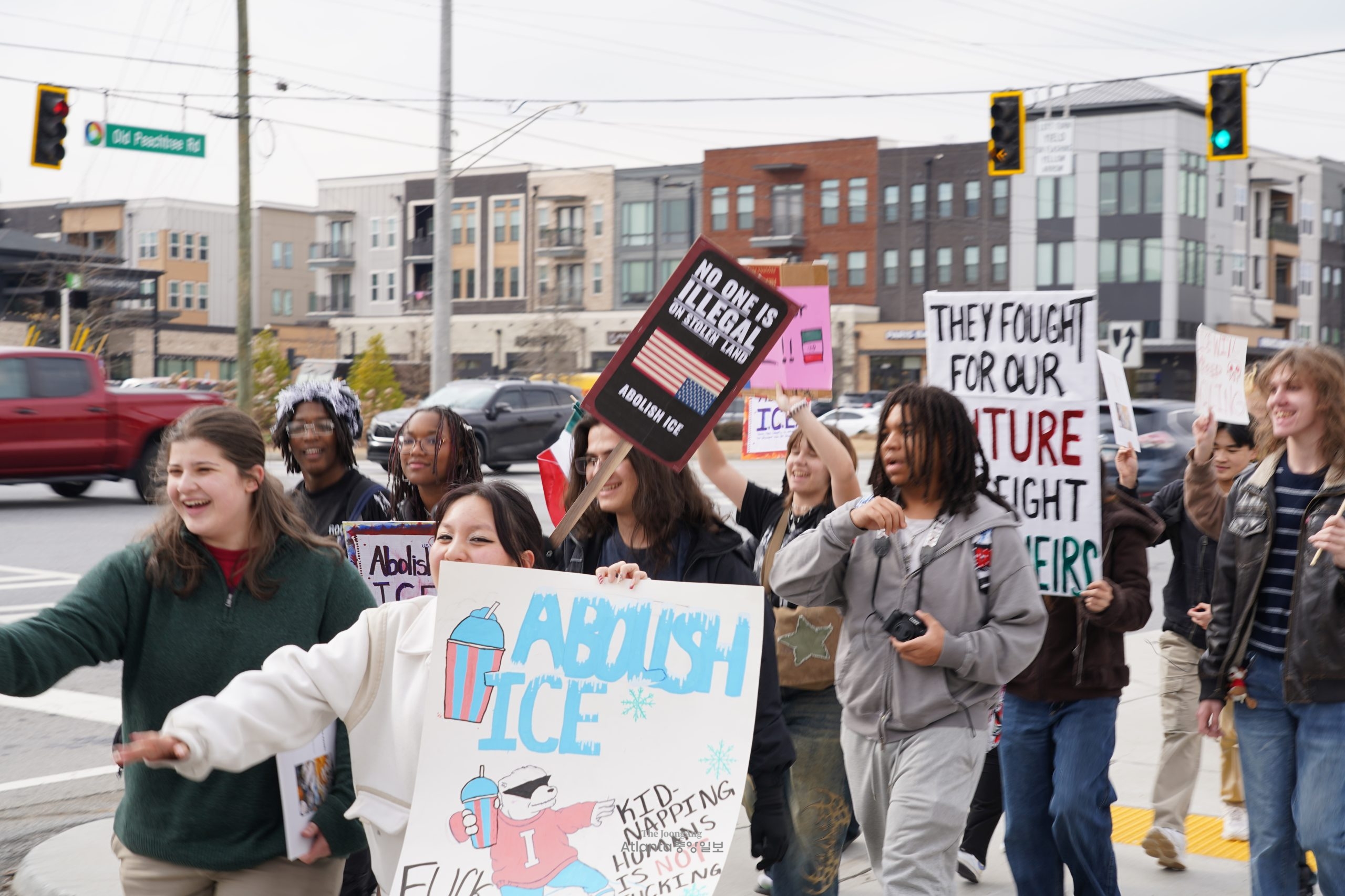30일 오후2시 10여명의 학생이 귀넷 카운티 스와니 피치트리 릿지 고등학교 학생 주차장에 모였다. 이들은 ‘도둑맞은 땅에서는 누구도 불법이 아니다'(Nobody is illegal on stolen land), ‘그들은 우리 미래를 위해 싸웠다. 이젠 우리가 그들을 위해 싸우자’, ‘ICE 고아'(ICE Orphan, 이민단속으로 부모를 잃은 자녀) 등이 적힌 피켓을 들고 1.5마일 대로변을 왕복 행진했다. 이날 학생 시위대를 본 주민들은 차량 경적을 울리며 연대 뜻을 표현했다.