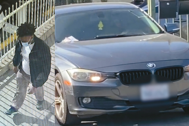 샘 커뮤니티교회 CCTV에 포착된 용의자로 추정되는 남성(왼). 용의자가 타고 온 것으로 추정되는 회색 BMW 차량. [샘 신 목사 제공]