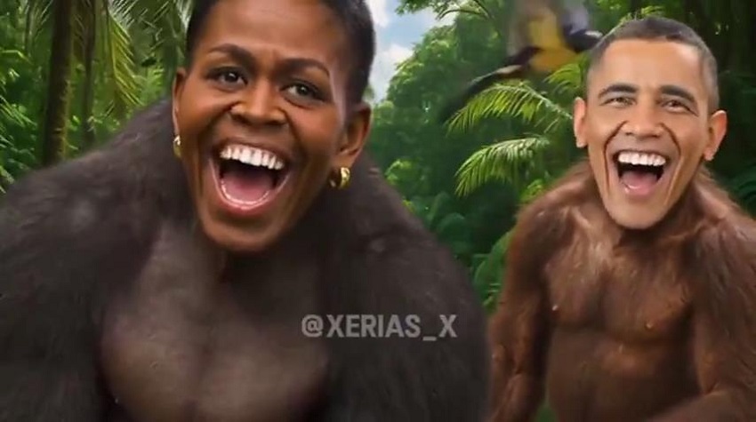 1분짜리 영상의 말미에는 오바마 전 대통령과 부인인 미셸 여사의 얼굴에 원숭이의 몸을 합성한 장면이 등장한다.