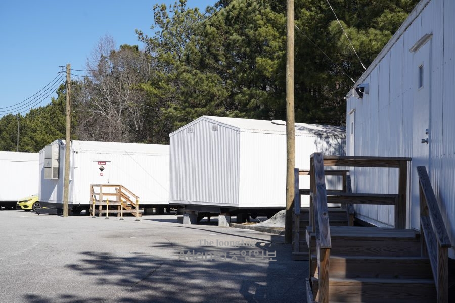 던컨크릭 초등학교는 학생 수가 급증하면서 2년 전 임시 이동식 컨테이너 교실을 설치해 수업 공간으로 활용하고 있다.