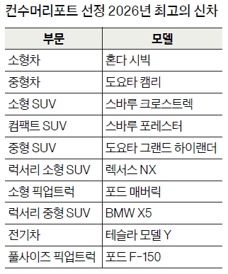 소비자 옹호 비영리조직 컨수머리포트가 선정한 2026년 최고의 신차 평가 결과 일본차가 부문별 1위를 다수 석권한 가운데, 한국차 모델은 하나도 포함되지 않은 것으로 나타났다.