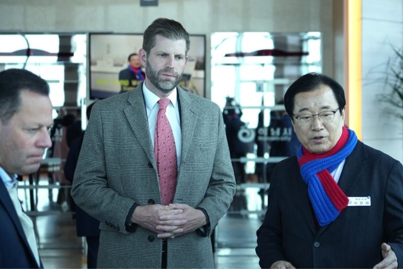 또한 최태원 SK그룹 회장 조카인 최성환 SK네트웍스 사업총괄사장과도 만났다. 최 사장은 11일 자신의 링크드인 계정을 통해 에릭 트럼프 부사장과 함께 찍은 사진을 공개하며 “에릭 트럼프와 워커힐 호텔에서 정말 의미 있는 재회의 시간을 가졌다”고 알렸다.