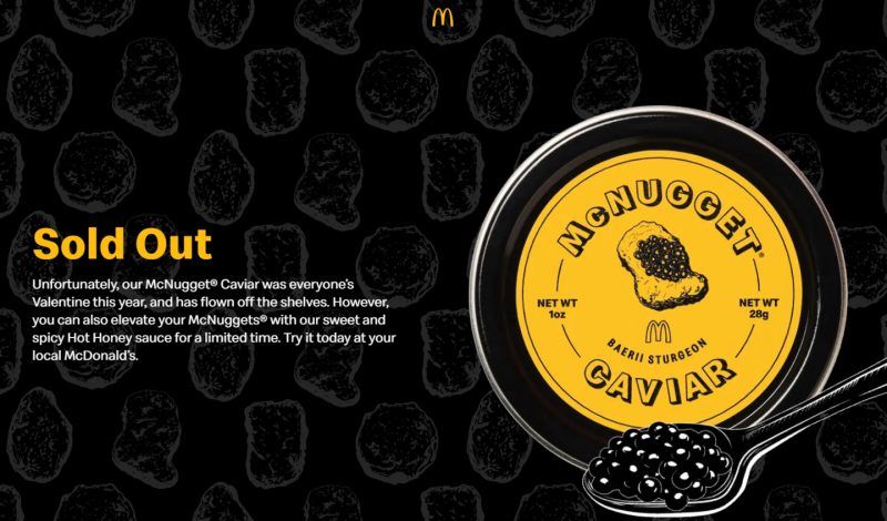 맥도날드가 밸런타인데이를 앞두고 진행한 한정판 ‘맥너겟 캐비아’ 키트 무료 제공 이벤트 도중 웹사이트가 다운돼 논란이다.