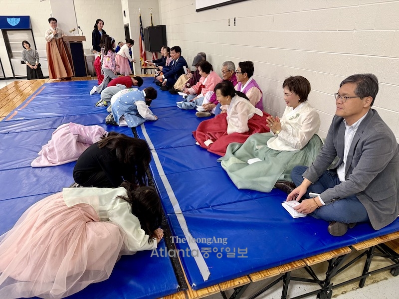 애틀랜타한국학교(교장 고은양)는 14일 오전 설날잔치를 개최했다. 이날 많은 학생들이 한복을 입고 등교했다.