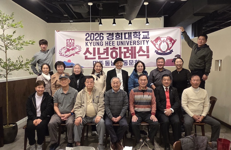 경희대학교 미주동남부 동문회(회장 유은희)는 희망찬 2026년 맞이하여 지난 15일 오후 둘루스 소반 식당에서 신년하례회를 가졌다. 동문회는 다음 모임을 오는 5월 조지아주 북부에 있는 헬렌에서 가질 예정이며, 오상수 동문이 일정을 담당한다고 밝혔다. 이날 신년회 후원은 노화석(영문 56학번) 동문이, 5월 동문회 후원은 이만재(생물 60학번)이 할 예정이다.
