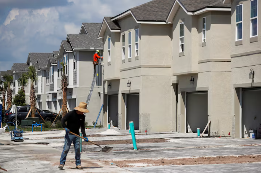 2021년 플로리다주 탬파에서 한 공사 인부가 타운하우스 건설 현장에서 작업하고 있다. [로이터]