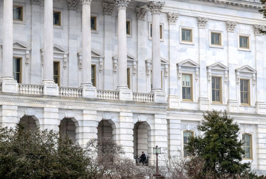 17일 미국 워싱턴DC 미국 연방의사당 밖에서 미국 의사당 경찰 소속 경찰관이 경계 근무를 하고 있다. [로이터]