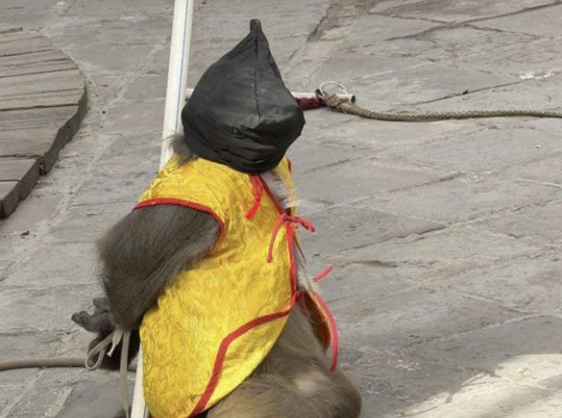 26일 홍콩 성도일보 등에 따르면, 허베이성 스자좡시의 한 관광지에서 진행된 원숭이 공연 영상이 최근 온라인에서 퍼졌다.