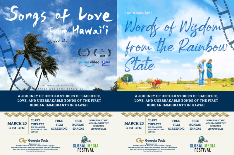 오는 20일 금요일 오후 12시부터 4시까지 조지아텍 빌 무어 학생센터에서 ‘하와이 연가(2024)’와 ‘무지개 나라의 지혜(2021)’ 두 편이 상영되고, 하와이 연가의 이진영 감독과의 대담도 예정돼 있다.