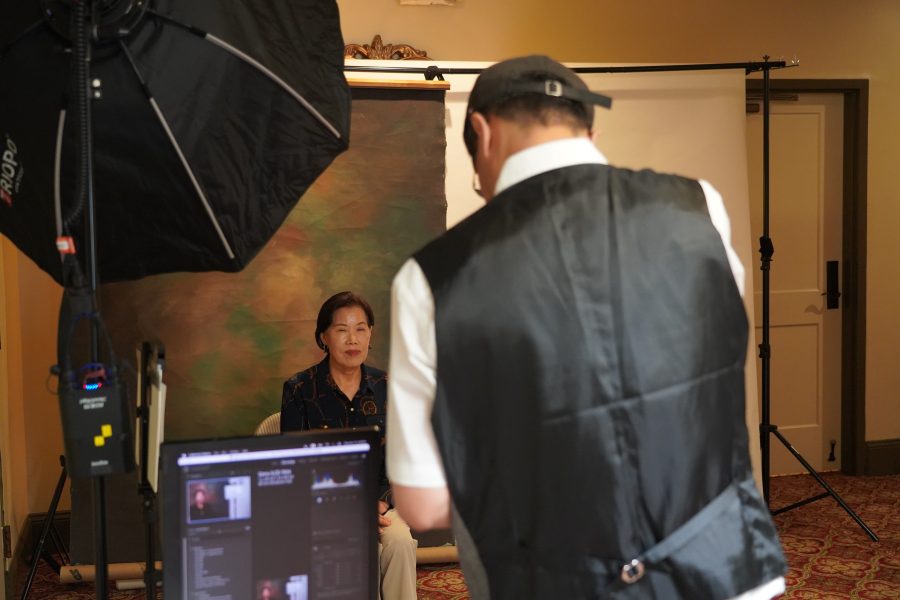 사진가 폴 황 씨가 13일 오픈하우스에 방문한 한인 고객의 장수 사진을 촬영하고 있다.