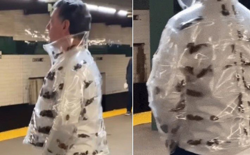 11일 프리프레스저널 등 외신에 따르면 최근 소셜미디어(SNS)를 통해 한 남성이 ‘바퀴벌레 재킷’을 입고 뉴욕 지하철 승강장에 서 있는 영상이 퍼졌다.