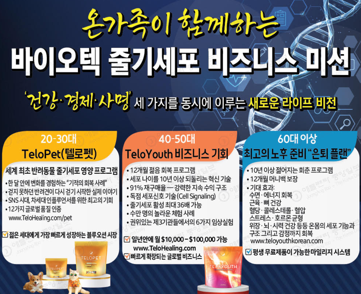 줄기세포 활성화를 돕는 텔로유스(Teloyouth)가 캘리포니아주에서 사업설명회를 개최한다.