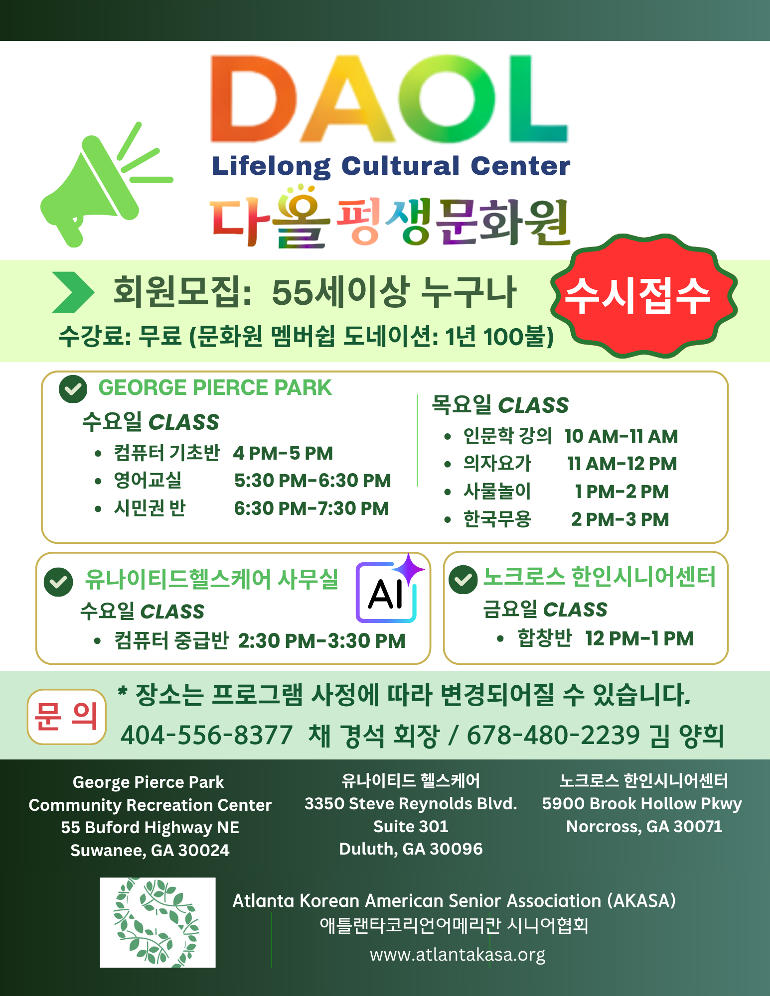 ▶문의=채경석 회장 404-556-8377, 김양희 678-480-2239