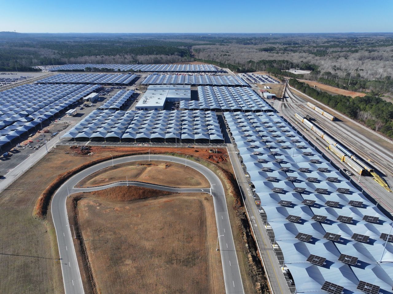 기아 조지아 공장 야외 주차장을 덮은 태양광 패널 모습. [VPS 제공]