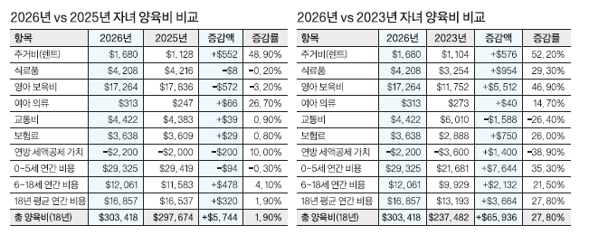 특히 유아 데이케어 비용은 2023년 대비 무려 46.9%나 올라 1만7264불을 기록했으며, 보험료도 3년 동안 26%나 상승했다.