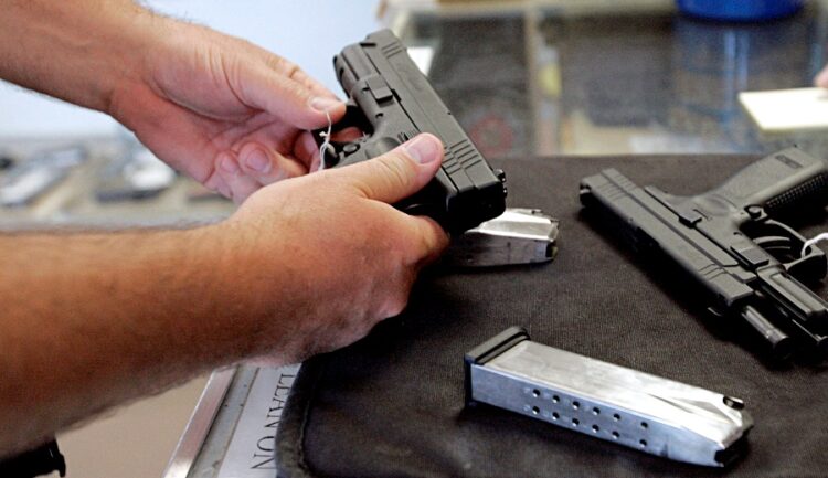 시카고의 링크스 건 앤 스포츠에서 9mm 권총을 살펴보고 있다. 로이터 사진